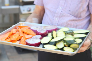 Cut the vegetables and coat with about ¼ cup of olive oil. Grill the veggies on the barbecue (or in a 400 degree oven) until they are cooked through. Let the veggies cool slightly and chop into smaller (~1/2 inch) cubes.