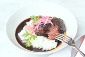 Serve the ribs with the reduced sauce. I like serving this with some sticky rice and pickled red onion and radishes (pickling recipe can be found on the blog).