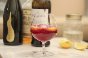 Fill a large bourbon, cognac or wine glass with ice. Add all the ingredients and garnish with a slice of lemon. Enjoy!